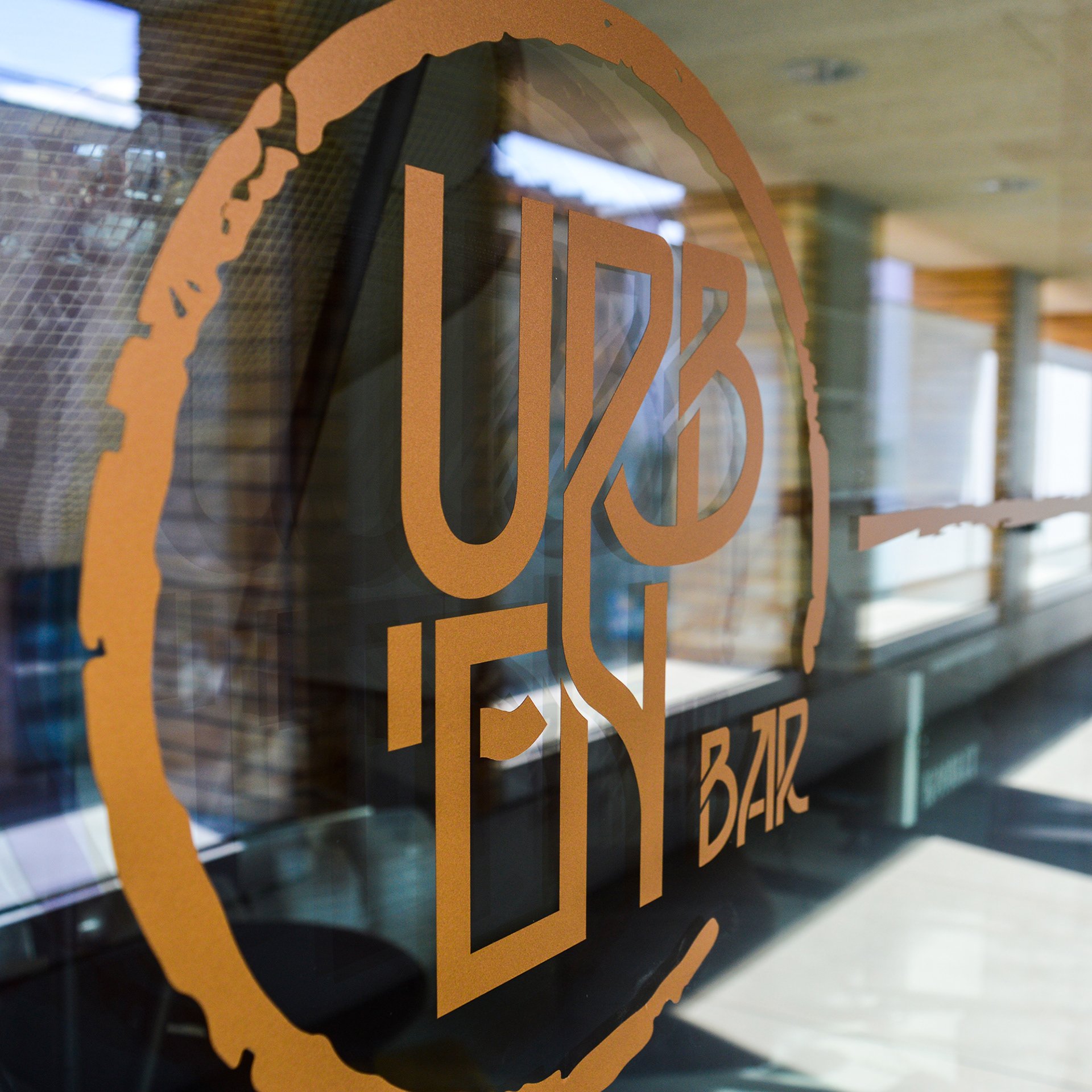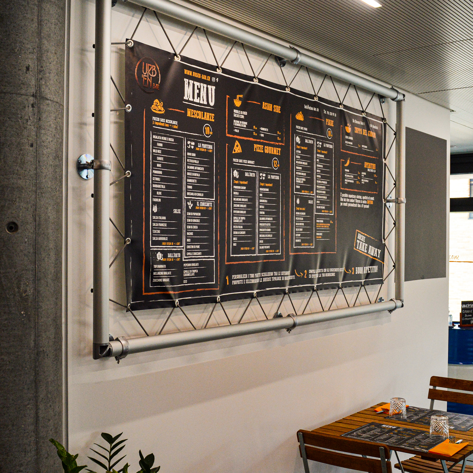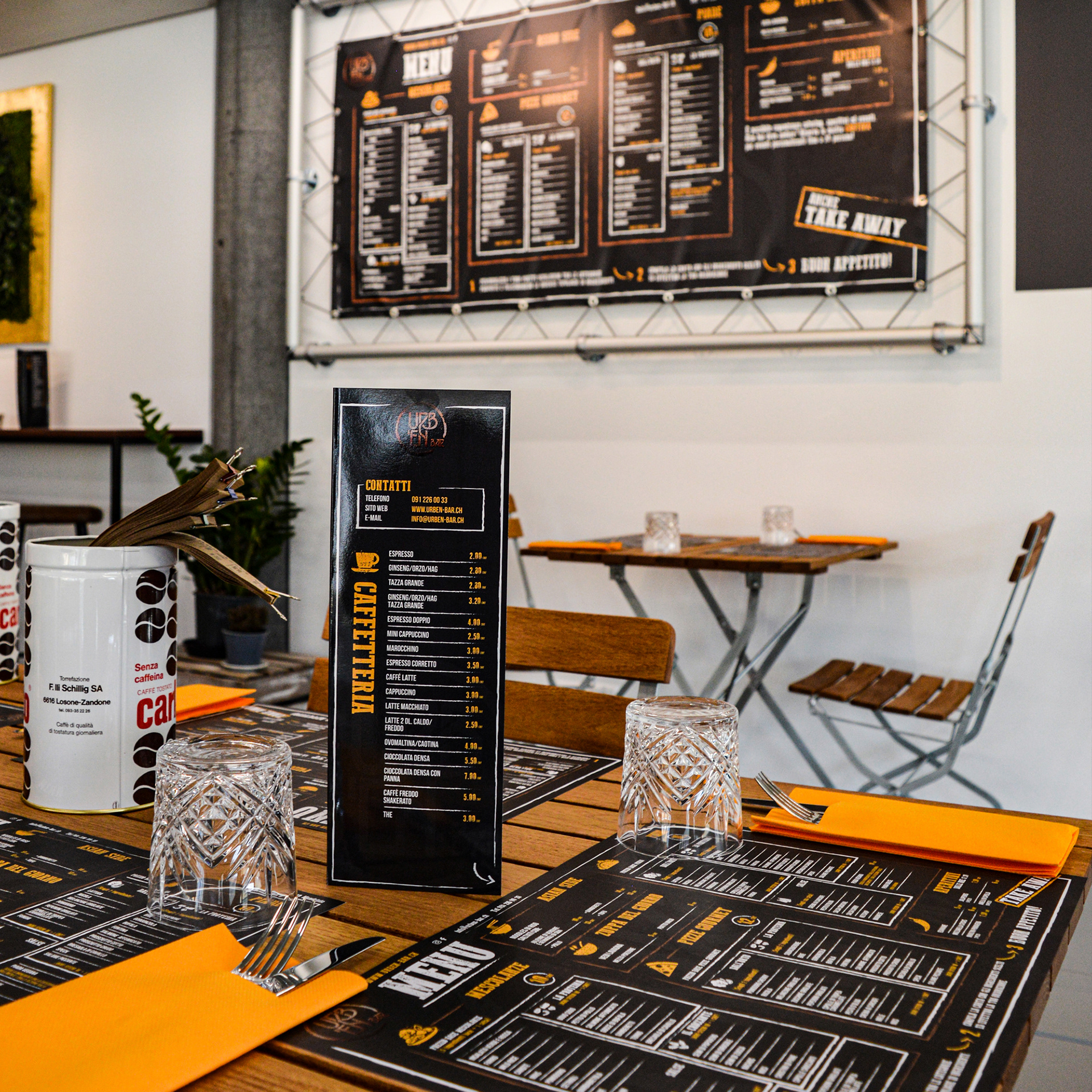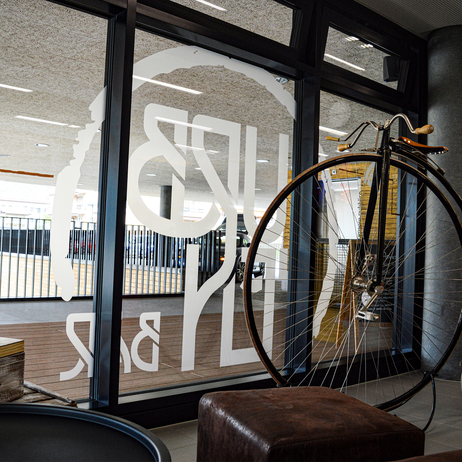Decorazioni delle vetrofanie e creazione dell'identità del nuovo locale Urb'en di Mendrisio